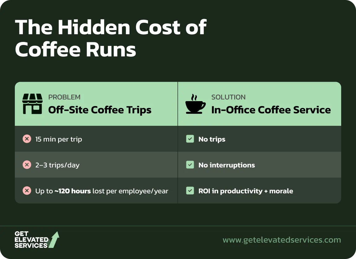 Data consistently shows that poor or non-existent coffee at office costs thousands in lost productivity.