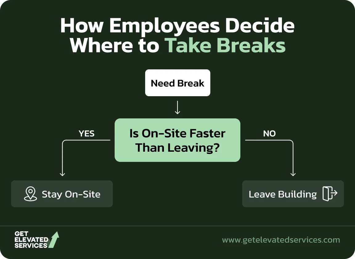 Employees stay on-site during breaks when convenience outweighs external options. The decision is rarely about motivation and almost always about environment.