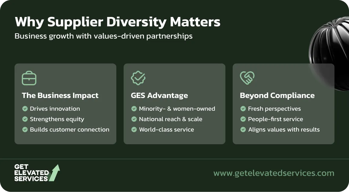 For large organizations, supplier diversity often plays a critical role in procurement and ESG reporting. Partnering with GES helps companies: